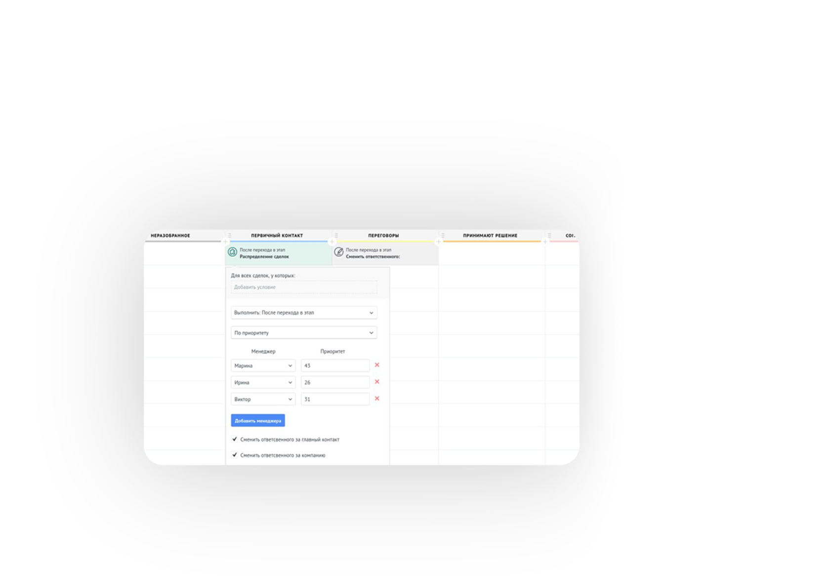 Автоматизируйте распределение сделок между клиентами в amoCRM.